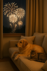 Por isso, sempre que houver queima de fogos, é essencial adotar medidas preventivas, como manter os pets em ambientes seguros, tranquilos e confortáveis.